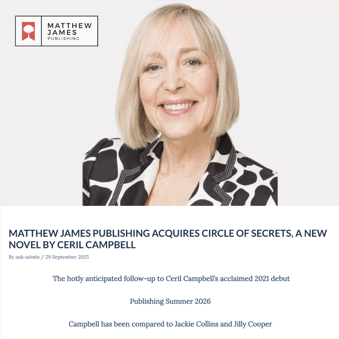 Author Matthew James Publishing Acquires Circle of Secrets – Ceril Campbell’s 2nd Novel Read More 3 October 2025